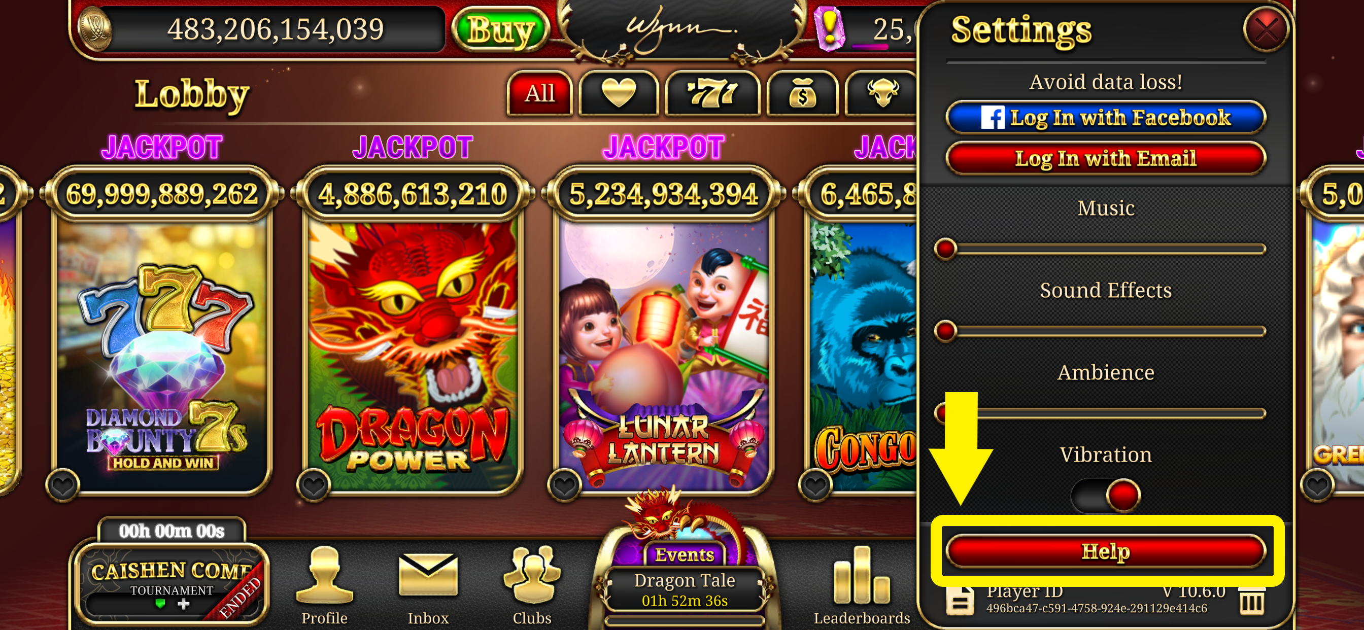 You can contact us using the in-app "Help" button, which can be accessed by tapping the top right "Gear" icon. Also, you can send us an email at help@wynnslot.com.
