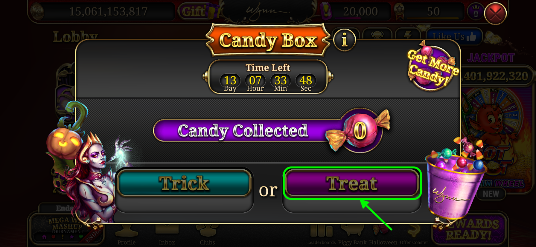 After clicking the "Candy" button, if you choose to "Treat" yourself, it will award you the coin amount displayed. The more candy you redeem, the higher the amount of the reward coins.