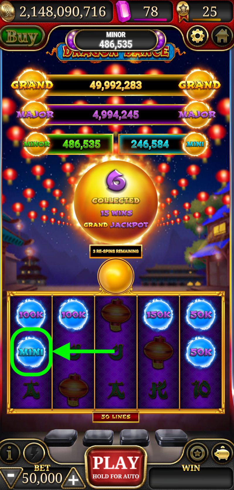 Fig: Mini jackpot appeared in the re-spin round