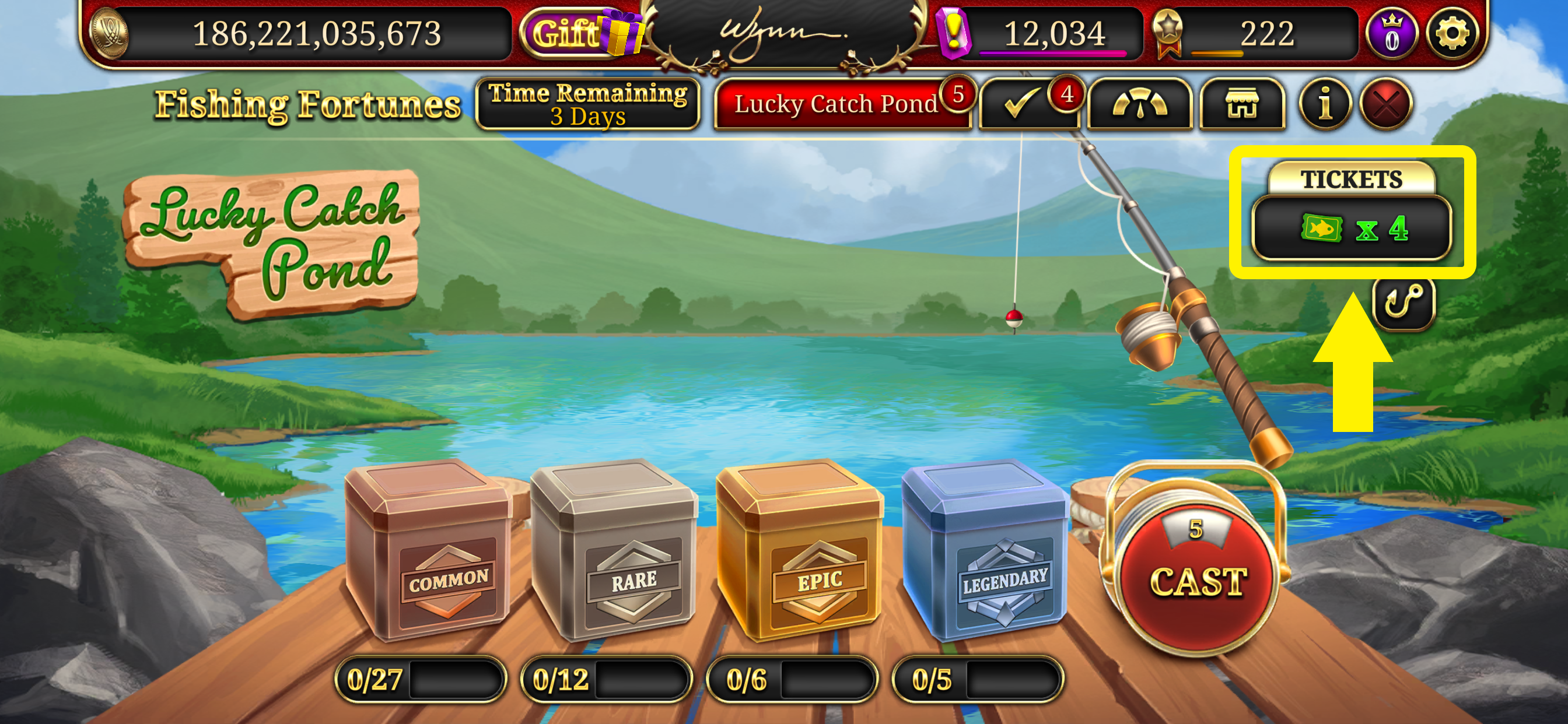 Fishing Tickets are a special in-game currency used exclusively in the Fishing Fortunes feature. They allow players to cast their fishing rod and catch fish.