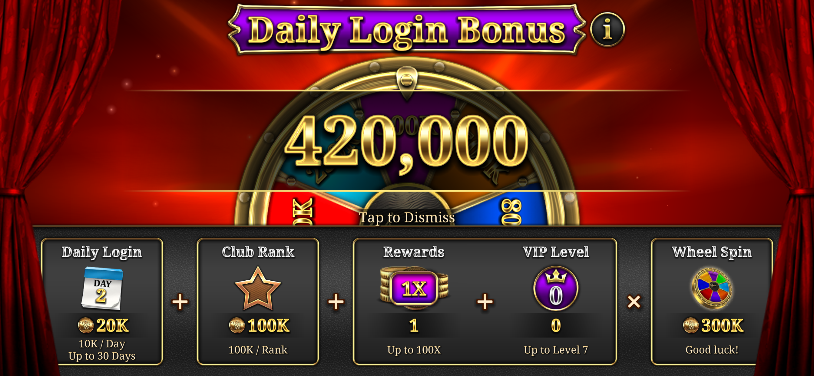 Whenever a player launches the game for the first time within a 24-hour period, they receive a Daily Login Bonus. This is displayed via a popup at startup and offers a chance to earn free coins to enhance their gaming session.