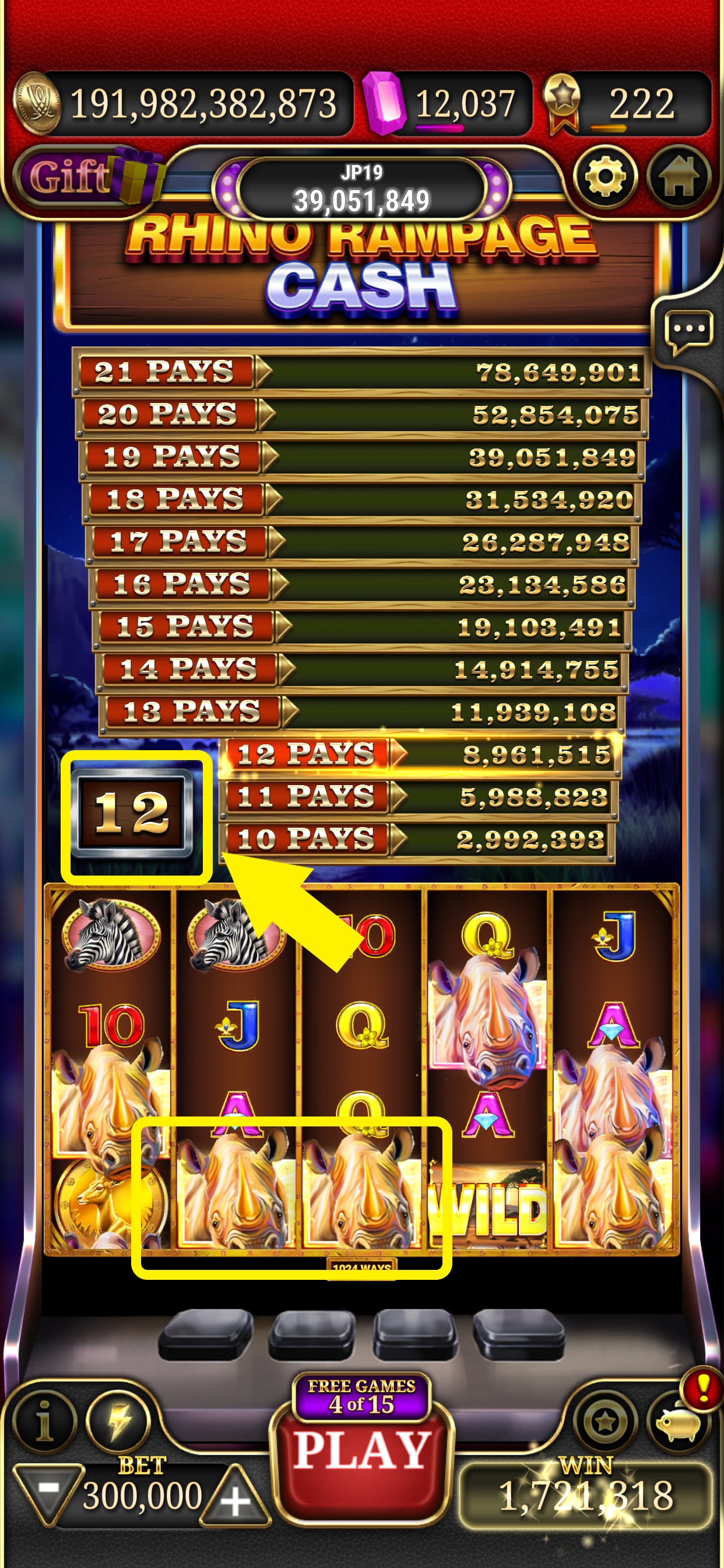 During the Free Spin feature, collect Golden Rhino symbols for a chance to win the Jackpots.