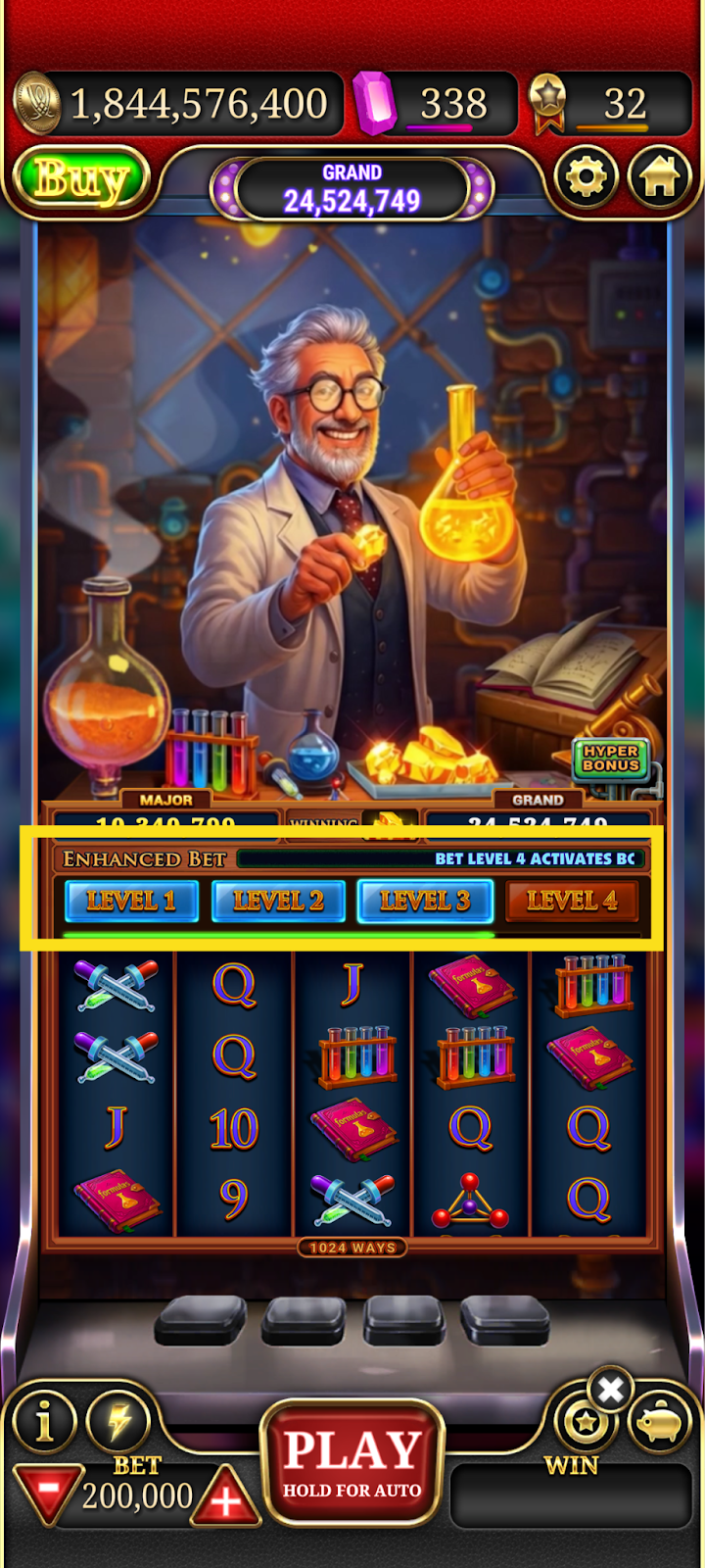 The Enhanced Bet lets you choose from 4 levels, where higher levels unlock extra features and increase your chances of winning bigger rewards.