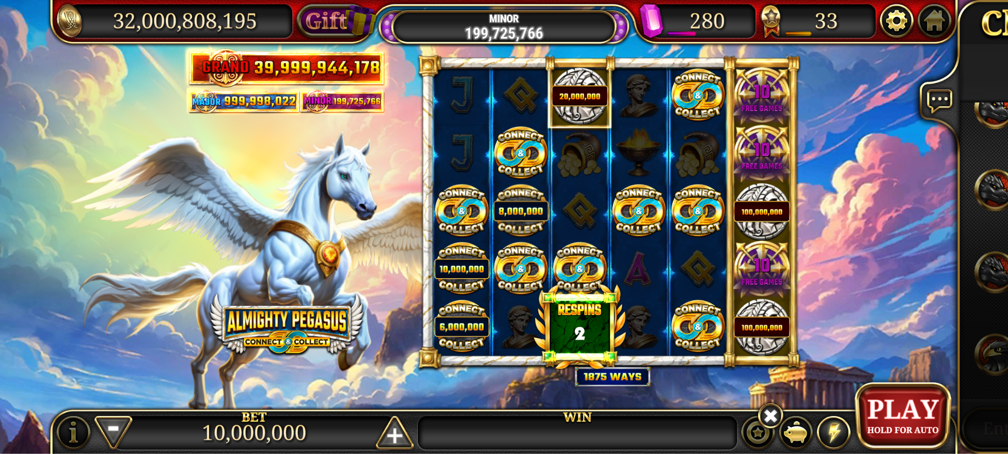 ReSpin – Awards 5 respins and holds all Connect & Collect symbols in place.